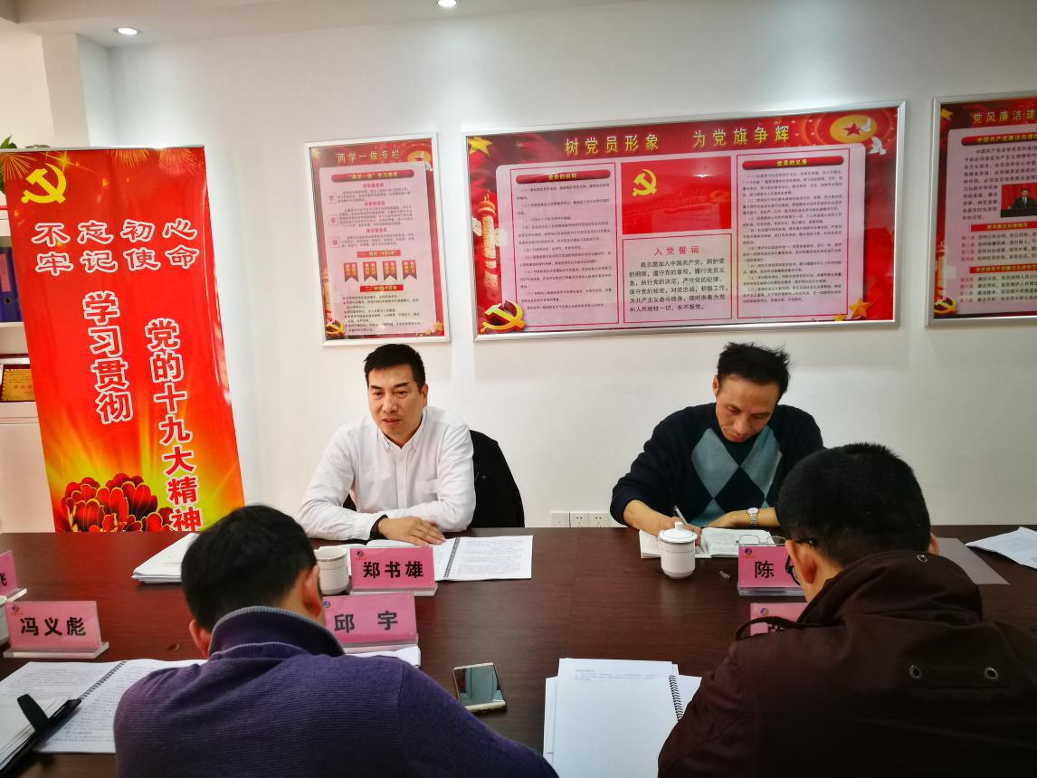 根據(jù)省委、省國資委黨委和福建輕紡黨組部署安排,2月11日,省金皇環(huán)保公司領(lǐng)導(dǎo)班子召開2017年度民主生活會(huì)。會(huì)議以認(rèn)真學(xué)習(xí)領(lǐng)會(huì)習(xí)近平新時(shí)代中國特色社會(huì)主義思想,堅(jiān)定維護(hù)以習(xí)近平同志為核心的黨中央權(quán)威和集中統(tǒng)一領(lǐng)導(dǎo),全面貫徹落實(shí)黨的十九大各項(xiàng)決策部署為主題,深入查找6個(gè)方面突出問題,嚴(yán)肅開展批評(píng)和自我批評(píng)。本次民主生活會(huì)由公司黨支部書記、總經(jīng)理邱宇主持,公司領(lǐng)導(dǎo)班子成員及黨支部委員參加此次會(huì)議。按照福建輕紡統(tǒng)一部署和要求,福建輕紡黨組成員、副總經(jīng)理鄭書雄,黨群工作部主任陳榮到會(huì)指導(dǎo)。